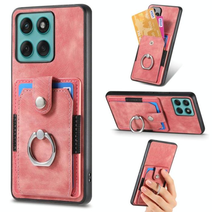 For Motorola Moto Edge 60 Fusion Retro Skin-feel Ring Card Wallet Phone Case(Pink)