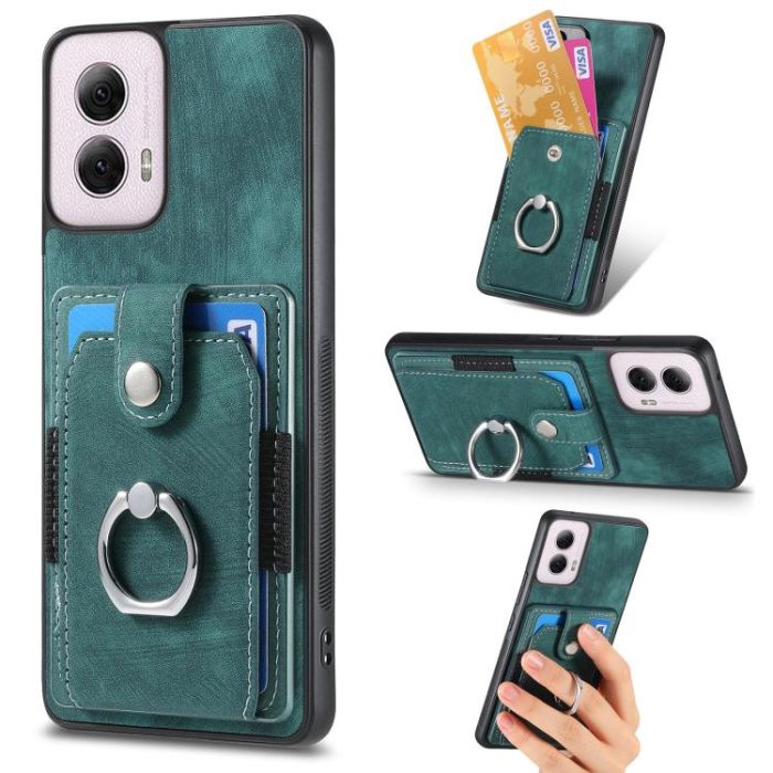 For Motorola Moto G Power 2024 5G Retro Skin-feel Ring Card Wallet Phone Case(Green)