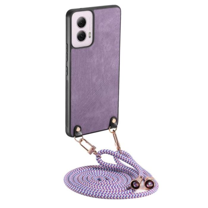 For Motorola Moto G Power 2024 5G Vintage Leather PC Back Cover Phone Case with Crossbody Strap(Purple)