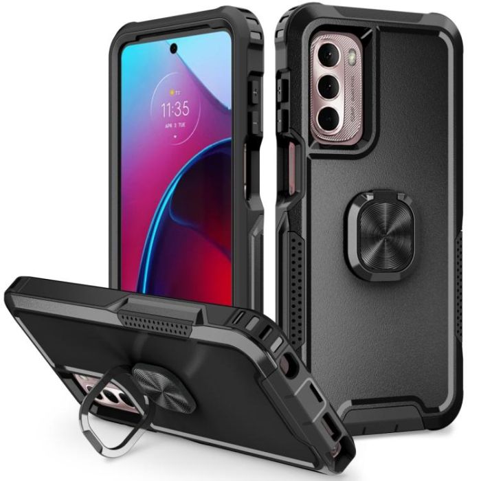 For Motorola Moto G Stylus 4G / 5G 2022 3 in 1 Ring Holder PC + TPU Phone Case(Black)