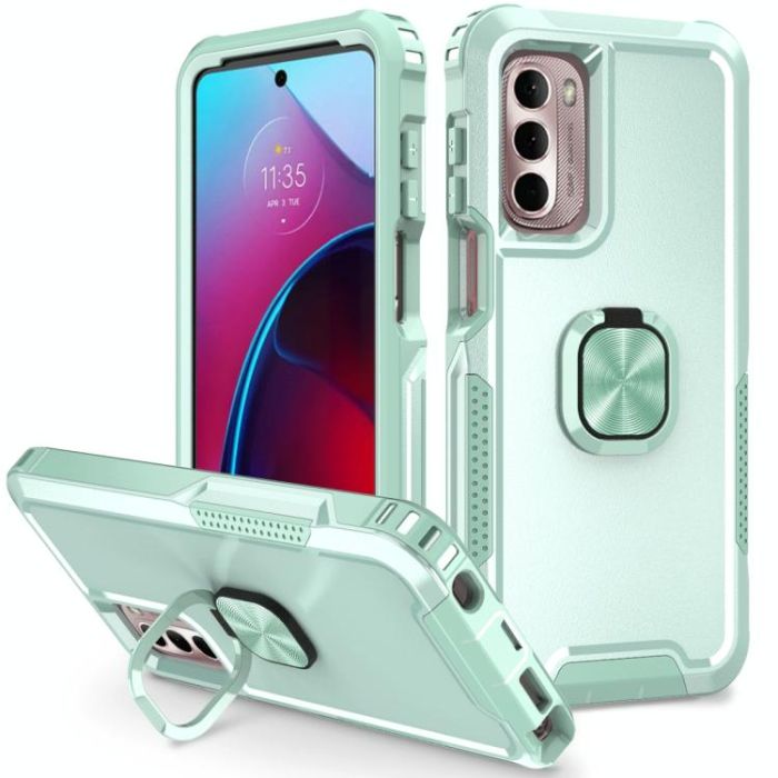 For Motorola Moto G Stylus 4G / 5G 2022 3 in 1 Ring Holder PC + TPU Phone Case(Mint Green)