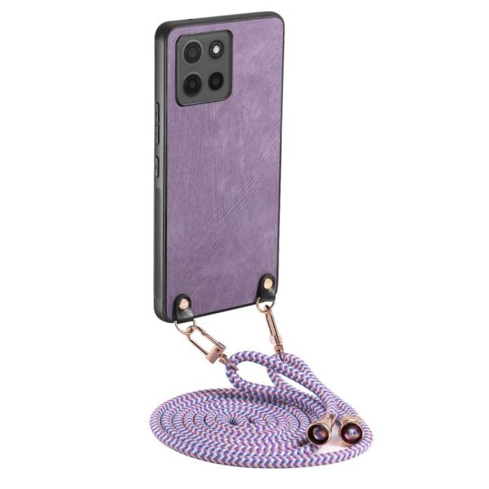For Motorola Moto G15 Vintage Leather PC Back Cover Phone Case with Crossbody Strap(Purple)