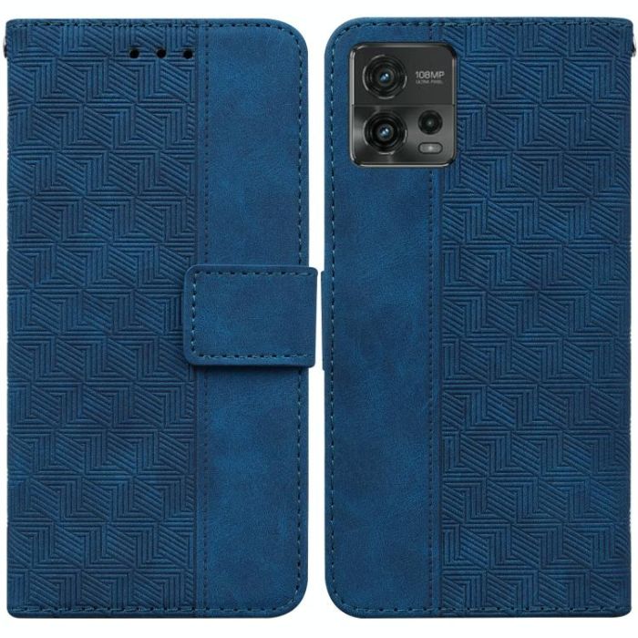 For Motorola Moto G72 Geometric Embossed Flip Leather Phone Case(Blue)