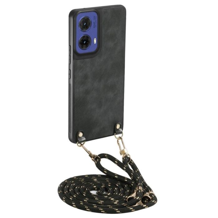 For Motorola Moto G85 Vintage Leather PC Back Cover Phone Case with Crossbody Strap(Black)