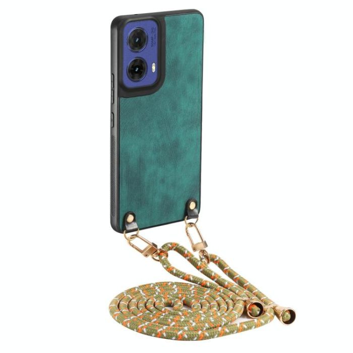 For Motorola Moto G85 Vintage Leather PC Back Cover Phone Case with Crossbody Strap(Green)