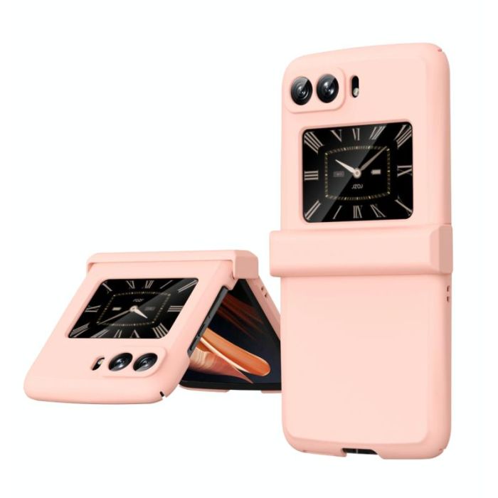 For Motorola Moto Razr 2022 Skin Feel Macaron Three-piece Set Hinge Phone Case(Pink)