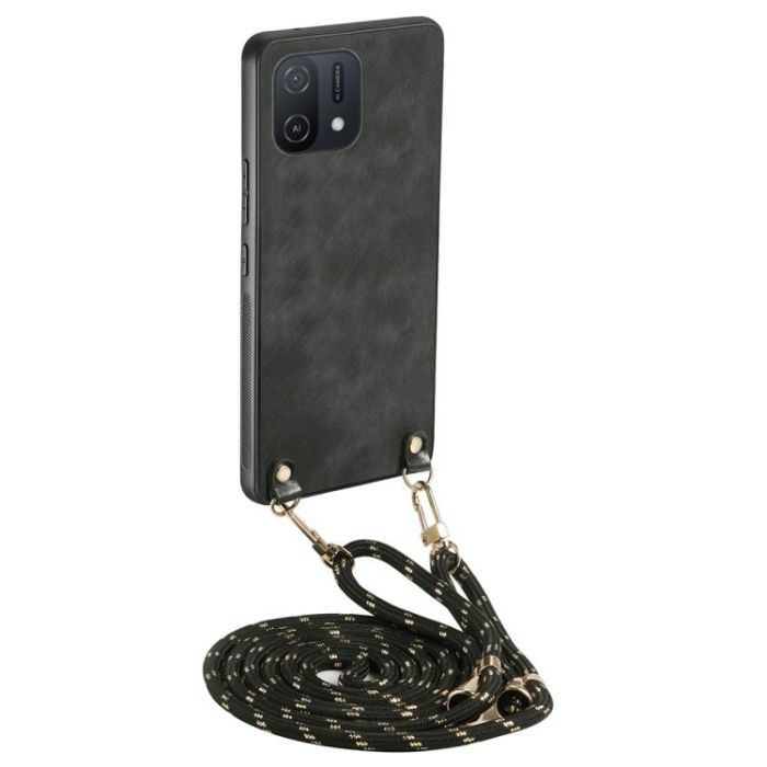 Description / For OPPO A16K Vintage Leather PC Back Cover Phone Case with Crossbody Strap(Black)
