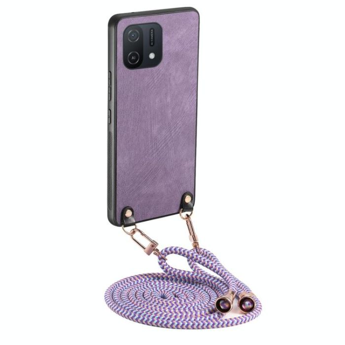 Description / For OPPO A16K Vintage Leather PC Back Cover Phone Case with Crossbody Strap(Purple)