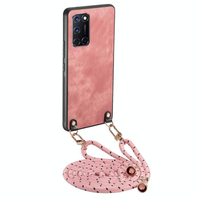 Description / For OPPO A52 / A72 / A92 Vintage Leather PC Back Cover Phone Case with Crossbody Strap(Pink)