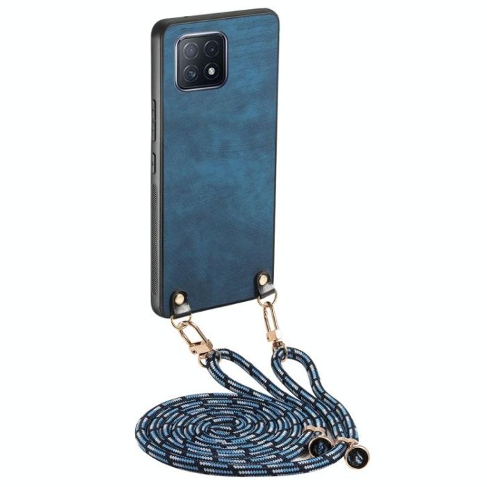 Description / For OPPO A72 5G Vintage Leather PC Back Cover Phone Case with Crossbody Strap(Blue)