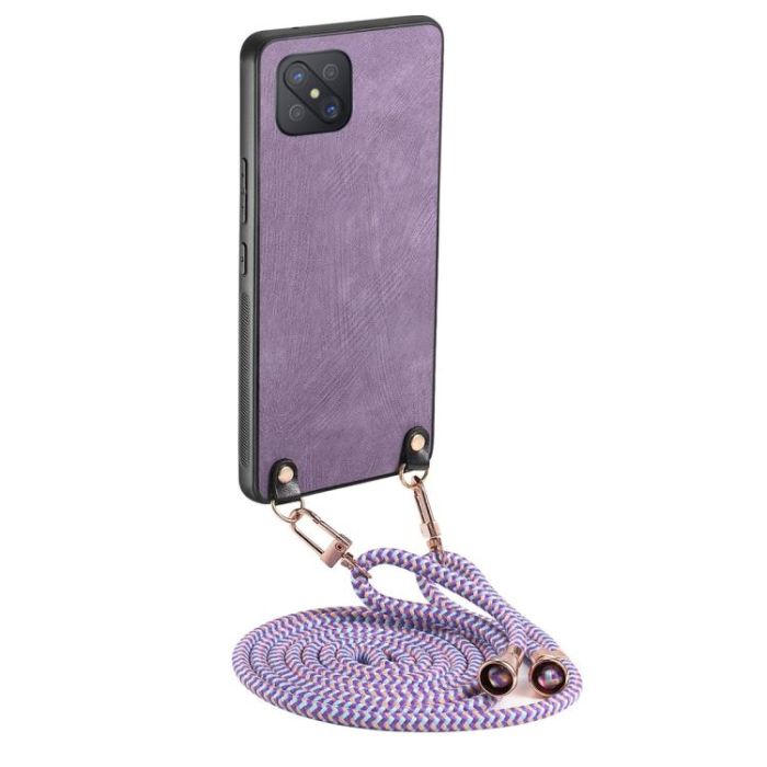 Description / For OPPO A92S Vintage Leather PC Back Cover Phone Case with Crossbody Strap(Purple)