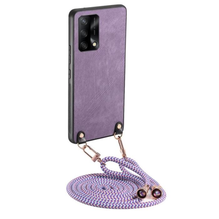 Description / For OPPO F19 / A74 4G Vintage Leather PC Back Cover Phone Case with Crossbody Strap(Purple)