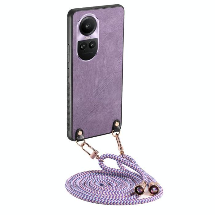 Description / For OPPO Reno10 Pro Global Vintage Leather PC Back Cover Phone Case with Crossbody Strap(Purple)