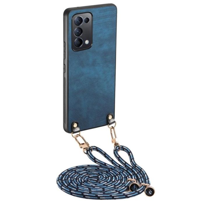 Description / For OPPO Reno5 5G Vintage Leather PC Back Cover Phone Case with Crossbody Strap(Blue)
