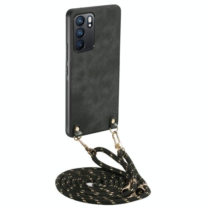 Description / For OPPO Reno6 5G Vintage Leather PC Back Cover Phone Case with Crossbody Strap(Black)