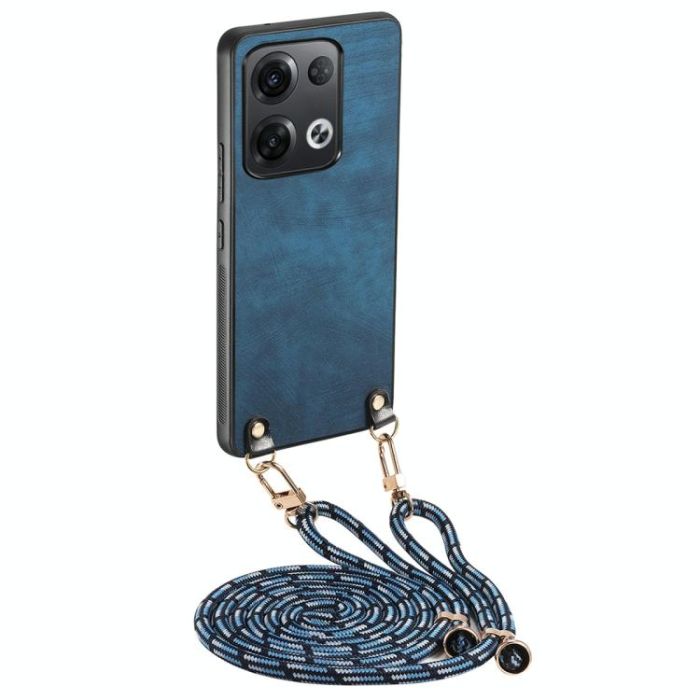 Description / For OPPO Reno8 Pro 5G Vintage Leather PC Back Cover Phone Case with Crossbody Strap(Blue)