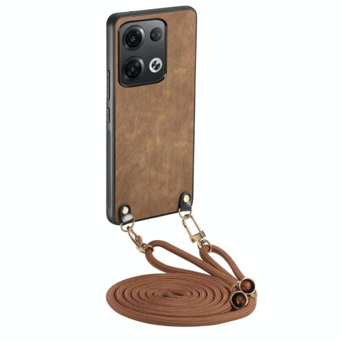 Description / For OPPO Reno8 Pro 5G Vintage Leather PC Back Cover Phone Case with Crossbody Strap(Brown)