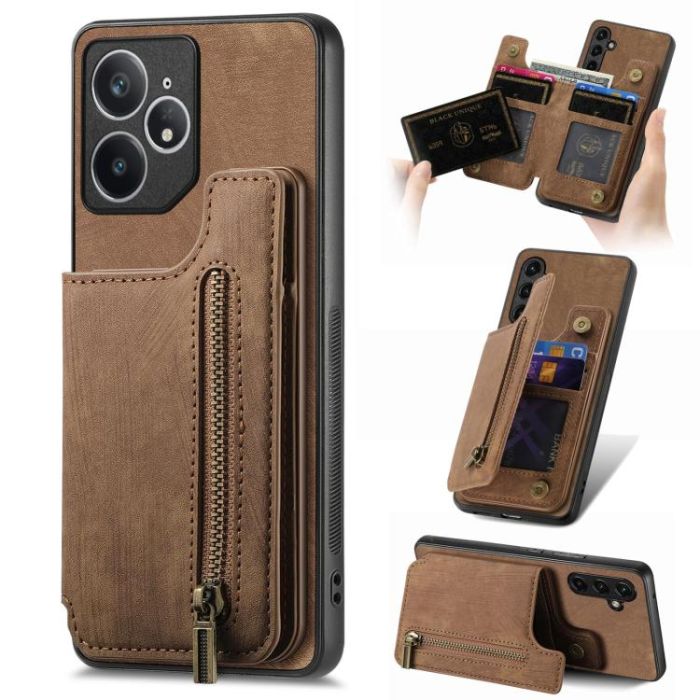 For Realme Neo7 Retro Leather Zipper Wallet Back Phone Case(Brown)