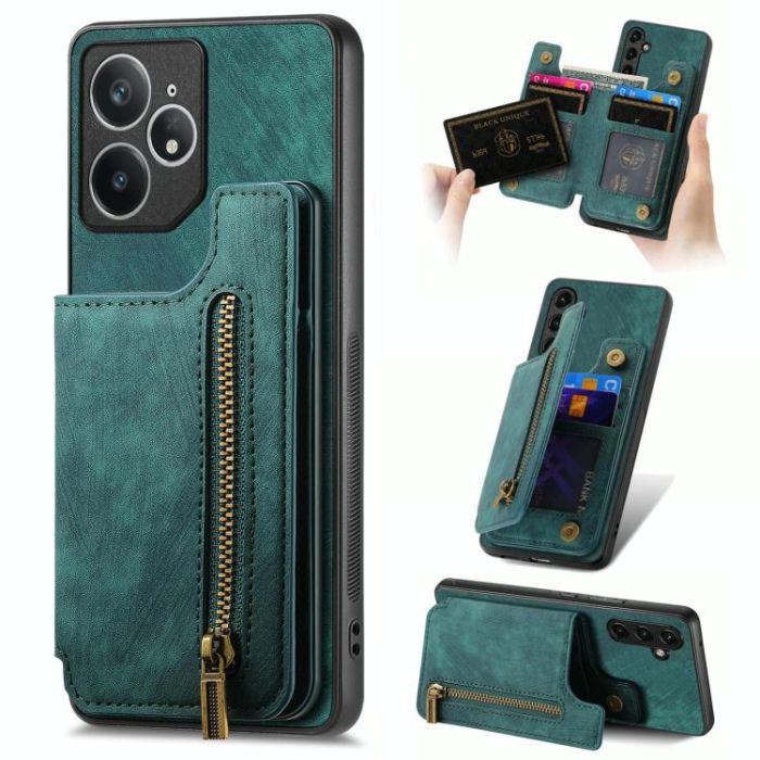 For Realme Neo7 Retro Leather Zipper Wallet Back Phone Case(Green)