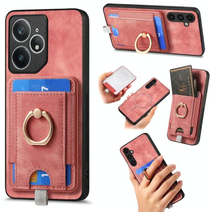 For Realme Neo7 Retro Splitable Magnetic Card Bag Leather Phone Case(Pink)