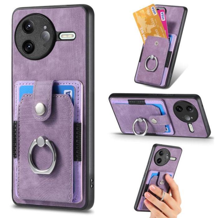 Description / For Redmi K80 Pro / Poco F7 Ultra Retro Skin-feel Ring Card Wallet Phone Case(Purple)