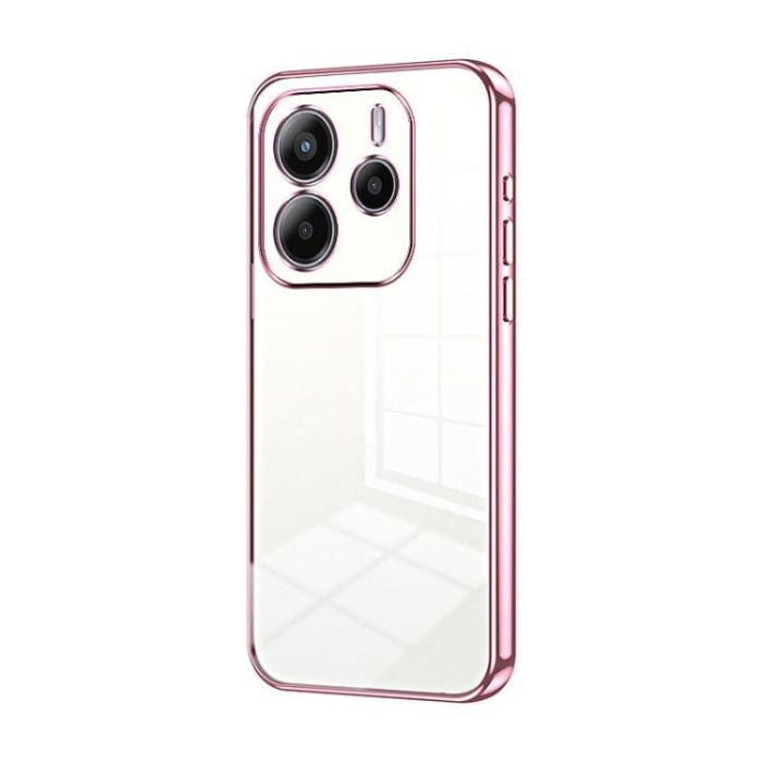 For Redmi Note14 4G 163.25mm Transparent Plating Fine Hole Phone Case(Pink)