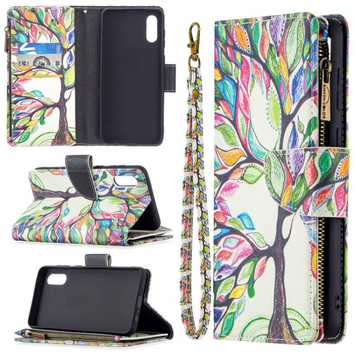 For Samsung Galaxy A02 Colored Drawing Pattern Zipper Horizontal Flip Leather Case with Holder & Card Slots & Wallet(Tree)