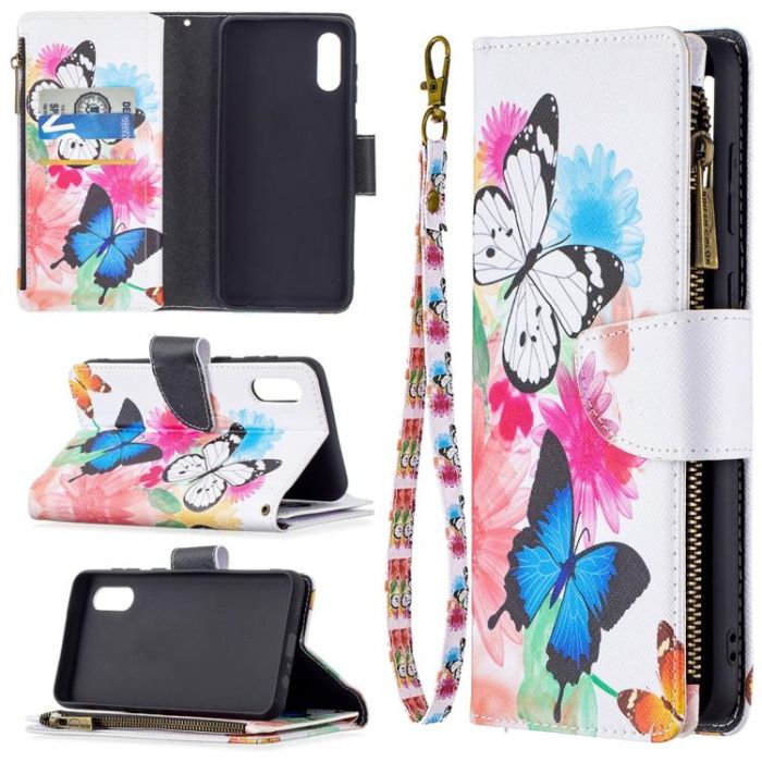 For Samsung Galaxy A02 Colored Drawing Pattern Zipper Horizontal Flip Leather Case with Holder & Card Slots & Wallet(Two Butterflies)