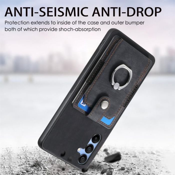 For Samsung Galaxy A15 Retro Skin-feel Ring Card Wallet Phone Case(Black)