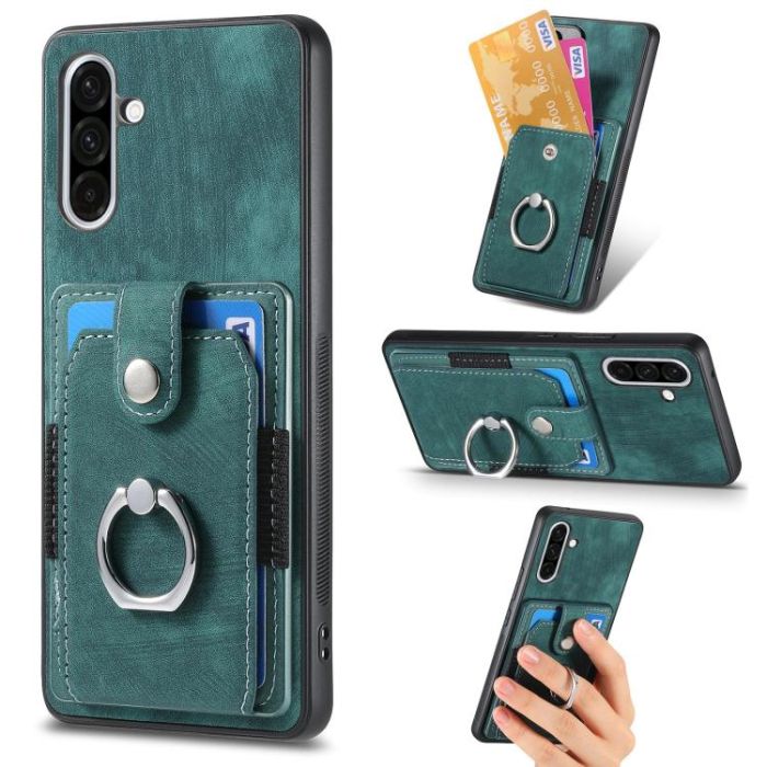 For Samsung Galaxy A36 Retro Skin-feel Ring Card Wallet Phone Case(Green)