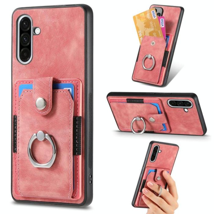 For Samsung Galaxy A36 Retro Skin-feel Ring Card Wallet Phone Case(Pink)