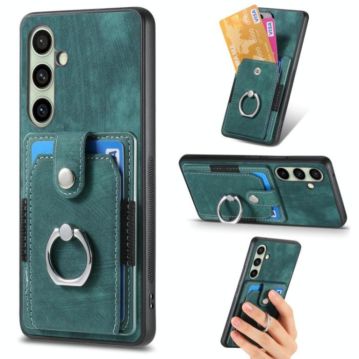 For Samsung Galaxy A56 5G Retro Skin-feel Ring Card Wallet Phone Case(Green)