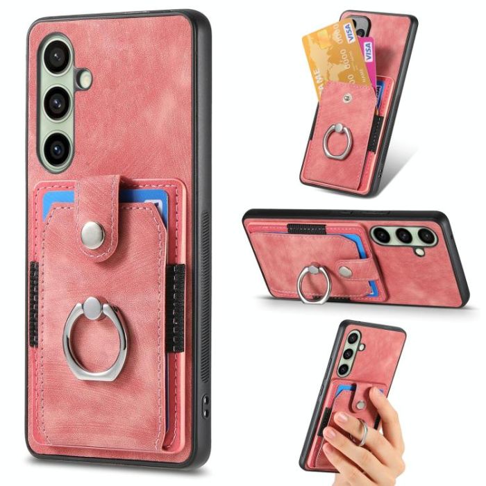 For Samsung Galaxy A56 5G Retro Skin-feel Ring Card Wallet Phone Case(Pink)