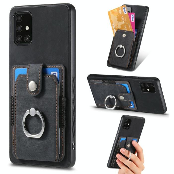 For Samsung Galaxy A71 Retro Skin-feel Ring Card Wallet Phone Case(Black)