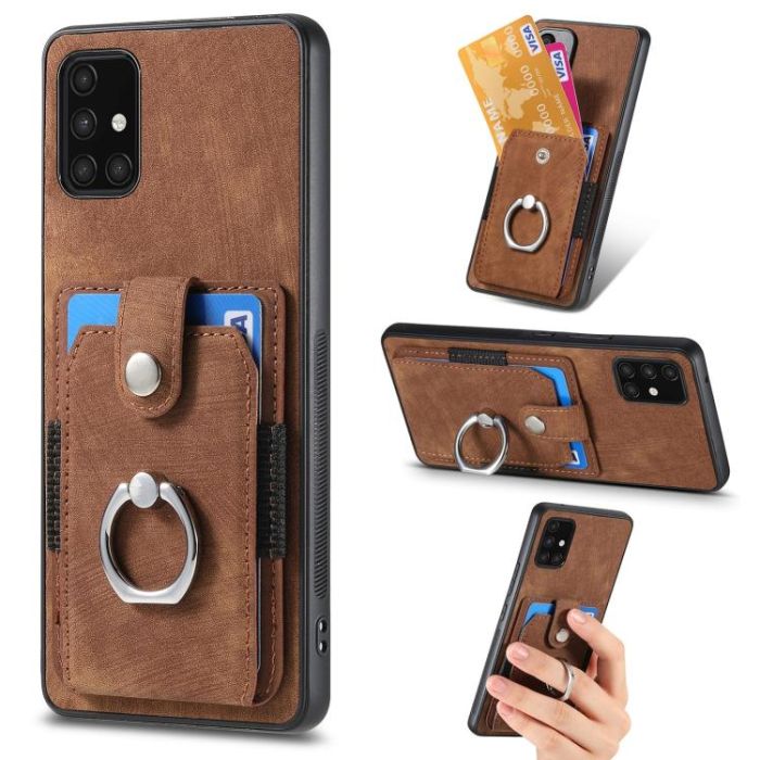 For Samsung Galaxy A71 Retro Skin-feel Ring Card Wallet Phone Case(Brown)