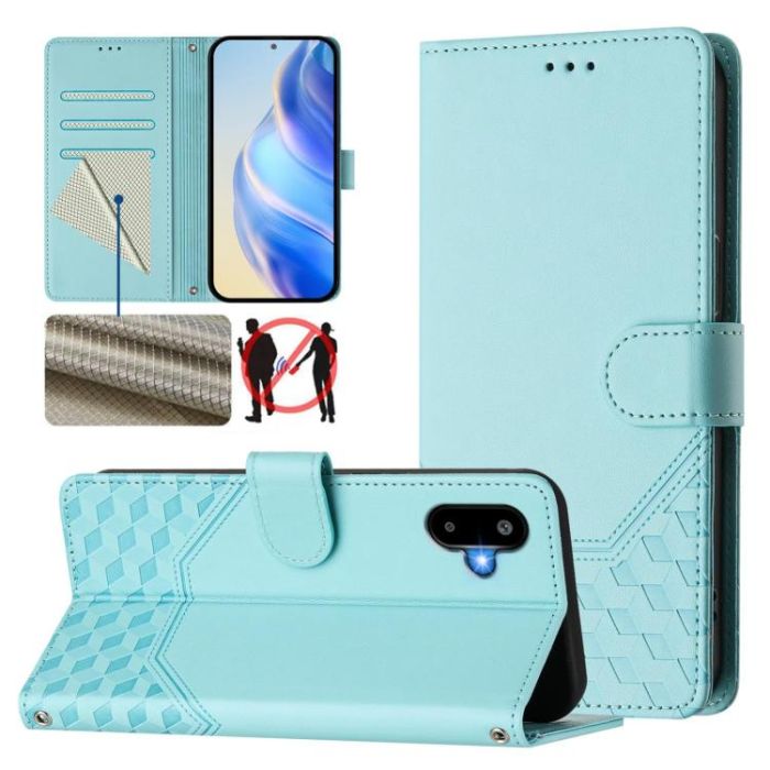 For Samsung Galaxy F06 5G / M06 5G Honeycomb Embossing RFID Leather Phone Case(Mint Green)