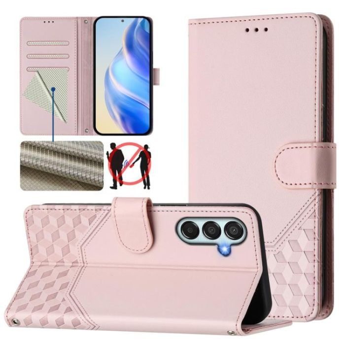 For Samsung Galaxy M15 5G / F15 5G Honeycomb Embossing RFID Leather Phone Case(Pink)