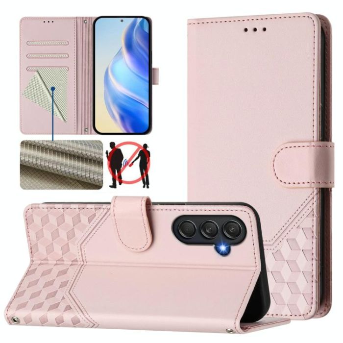 For Samsung Galaxy M55 / C55 5G Honeycomb Embossing RFID Leather Phone Case(Pink)