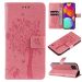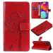 For Samsung Galaxy M62 / F62 Tree & Cat Embossed Pattern Flip Leather Phone Case(Red)