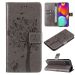 For Samsung Galaxy M62 / F62 Tree & Cat Embossed Pattern Flip Leather Phone Case(Blue)