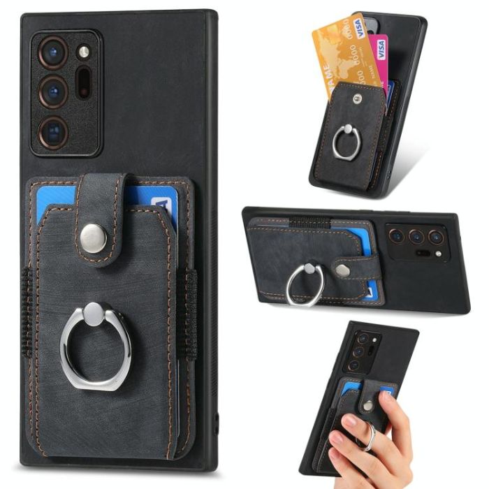 For Samsung Galaxy Note20 Ultra Retro Skin-feel Ring Card Wallet Phone Case(Black)