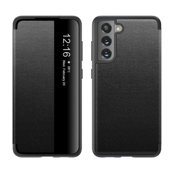 For Samsung Galaxy S21 FE Magnetic Side Window View Shockproof Horizontal Flip Leather Case(Black)