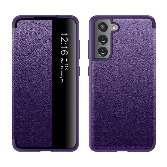 For Samsung Galaxy S21 FE Magnetic Side Window View Shockproof Horizontal Flip Leather Case(Purple)