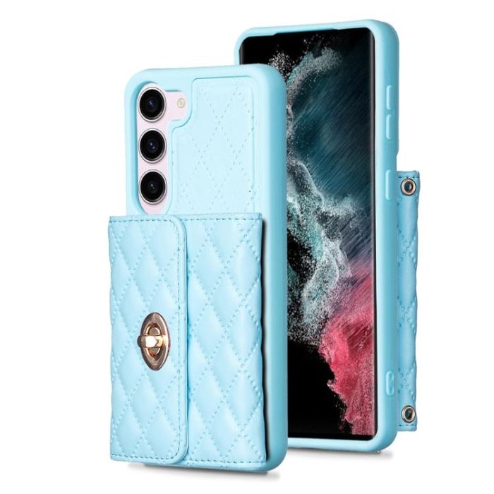 Description / For Samsung Galaxy S23 5G Horizontal Metal Buckle Wallet Rhombic Leather Phone Case(Blue)