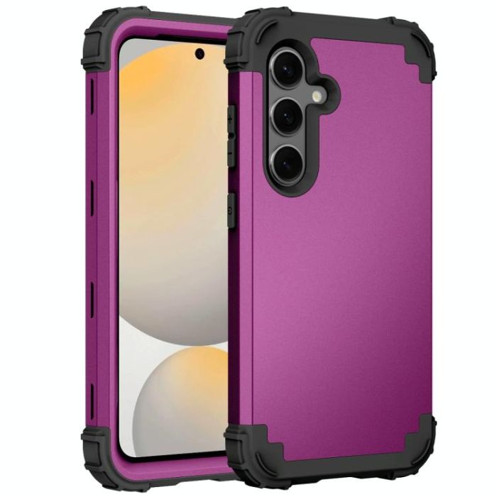 For Samsung Galaxy S24 FE 5G 3 in 1 Silicone Hybrid PC Shockproof Phone Case(Dark Purple Black)