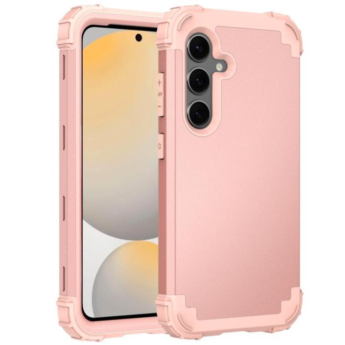 For Samsung Galaxy S24 FE 5G 3 in 1 Silicone Hybrid PC Shockproof Phone Case(Rose Gold)