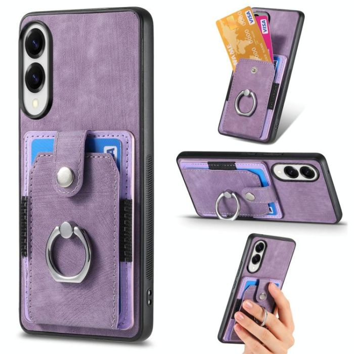 For Samsung Galaxy S25 Edge 5G Retro Skin-feel Ring Card Wallet Phone Case(Purple)