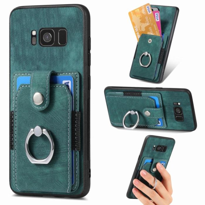 For Samsung Galaxy S8 Retro Skin-feel Ring Card Wallet Phone Case(Green)