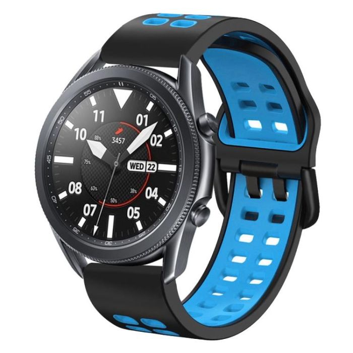 For Samsung Galaxy Watch 6 / 6 Classic Dual-row Hole Two Color Silicone Watch Band(Black Sky Blue)