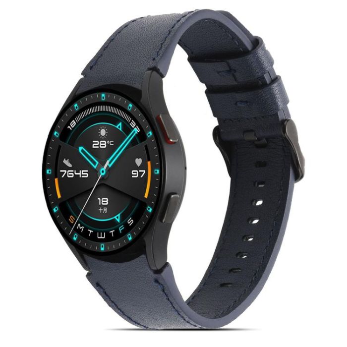 For Samsung Galaxy Watch4 40mm/44mm Double-sided Leather Watch Band(Dark Blue)
